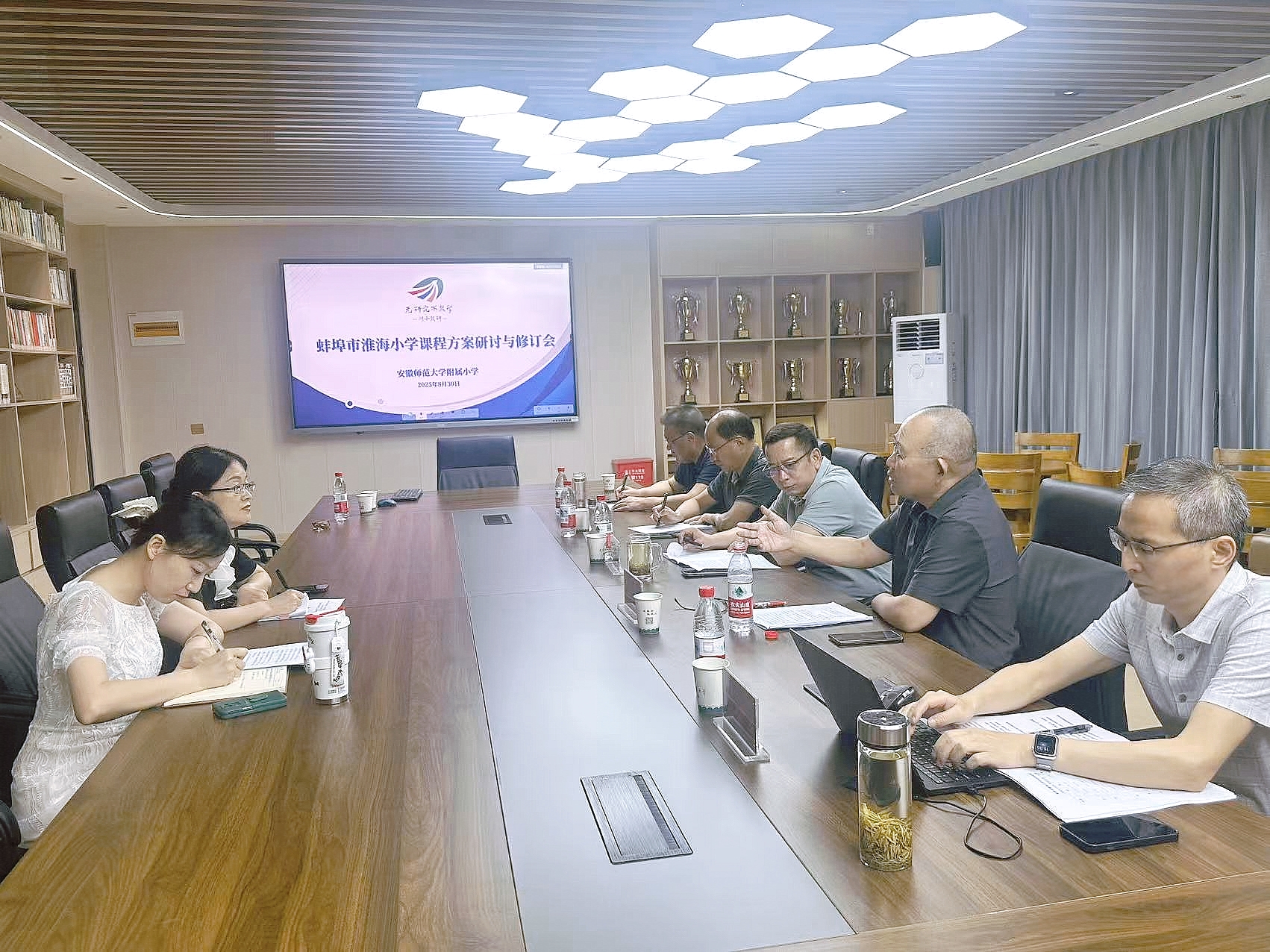 8月30日下午,蚌埠市淮海小学课程实施方案修订研讨会在附小举行。本次会议特邀安徽师范大学教育科学学院周兴国教授、吴支奎教授、杨晓奇教授担任审议专家,附小校长徐赟主持会议,副校长赵耀及教研部门全体人员参会,淮海小学执行校长仝伟伟出席会议,共同为淮海小学课程实施方案的优化完善凝聚智慧。