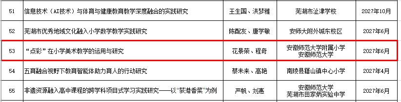 近日,芜湖市2025年度教育科学研究课题立项评审结果公示。经市教科所组织专家评审,我校共四项课题予以立项,立项数位居全市申报单位小学类第一。 特向所有立项课题组成员表示祝贺,并希望继续扎实开展好后续各项研究工作。