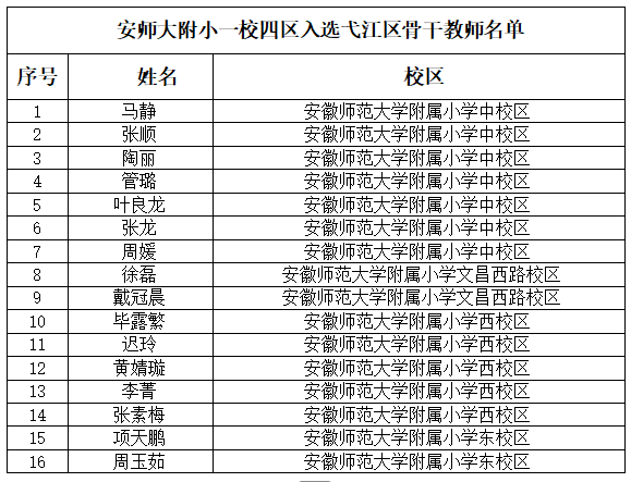 近日,芜湖市弋江区第十届区级骨干教师评选结果公示,我校一校四区共16位教师光荣入选,为附小教师团队再添荣光。特向此次所有获选教师表示祝贺。