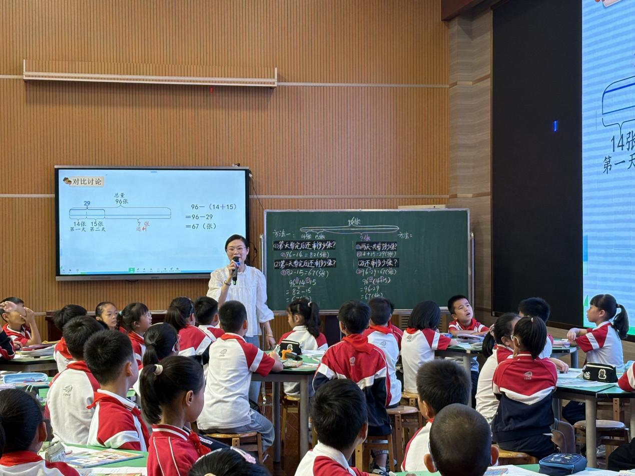 2025年9月25日上午,芜湖市小学数学教研组在我校开展小学数学课题项目研究“用真问题促推理意识培养的小学数学教学实践探究——三年级上册第二单元“混合运算”“解决问题”研讨活动。本次活动由安师大附小文昌西路校区吴雅妮老师主持,来自各校的专家及三年级教师代表参与观摩学习。