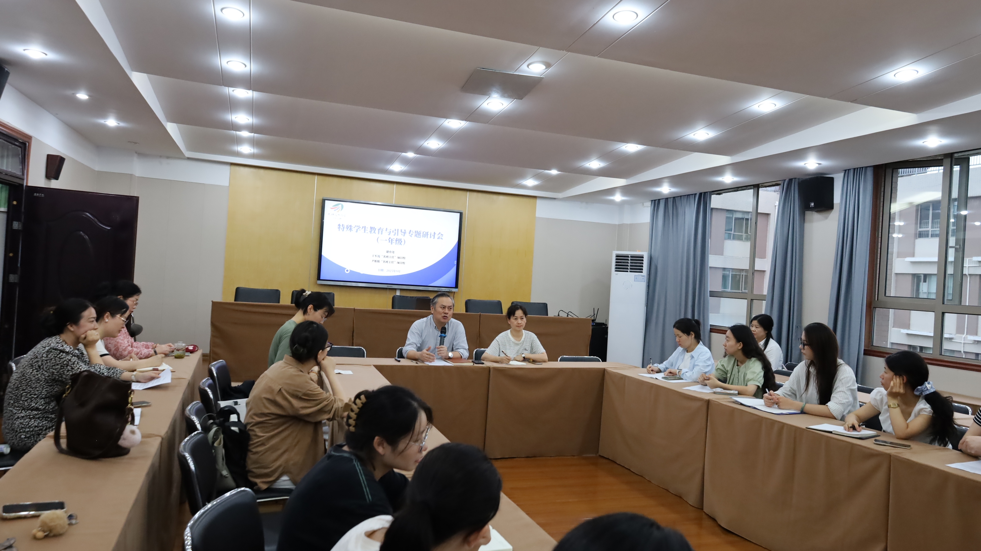9月26日,附小德育处、王军霞、尹娟娟“名班主任”项目组联合召开一年级正副班主任会议暨特殊学生教育引导专题研讨会。中校区和文昌西路校区一年级正副班主任、德育处全体成员及两个项目组成员,近四十位教师参与研讨。研讨会由附小党委副书记茆家祥主持。会议以特殊学生教育与引导为核心议题,旨在凝聚班主任教育共识、分享实践经验,为特殊学生营造更适宜的成长环境,推动一年级班级管理工作提质增效。