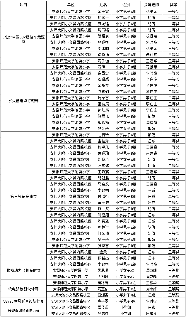 赛场上,附小学子沉着应战、团结协作,充分展现了优秀的科学素养、创新精神和实践能力。经过激烈角逐,两校区在1比27中国SUV遥控车竞速赛、水火箭定点打靶赛、第三视角竞速赛等多个项目中表现突出,共荣获一等奖11项、二等奖15项、三等奖24项,硕果累累!