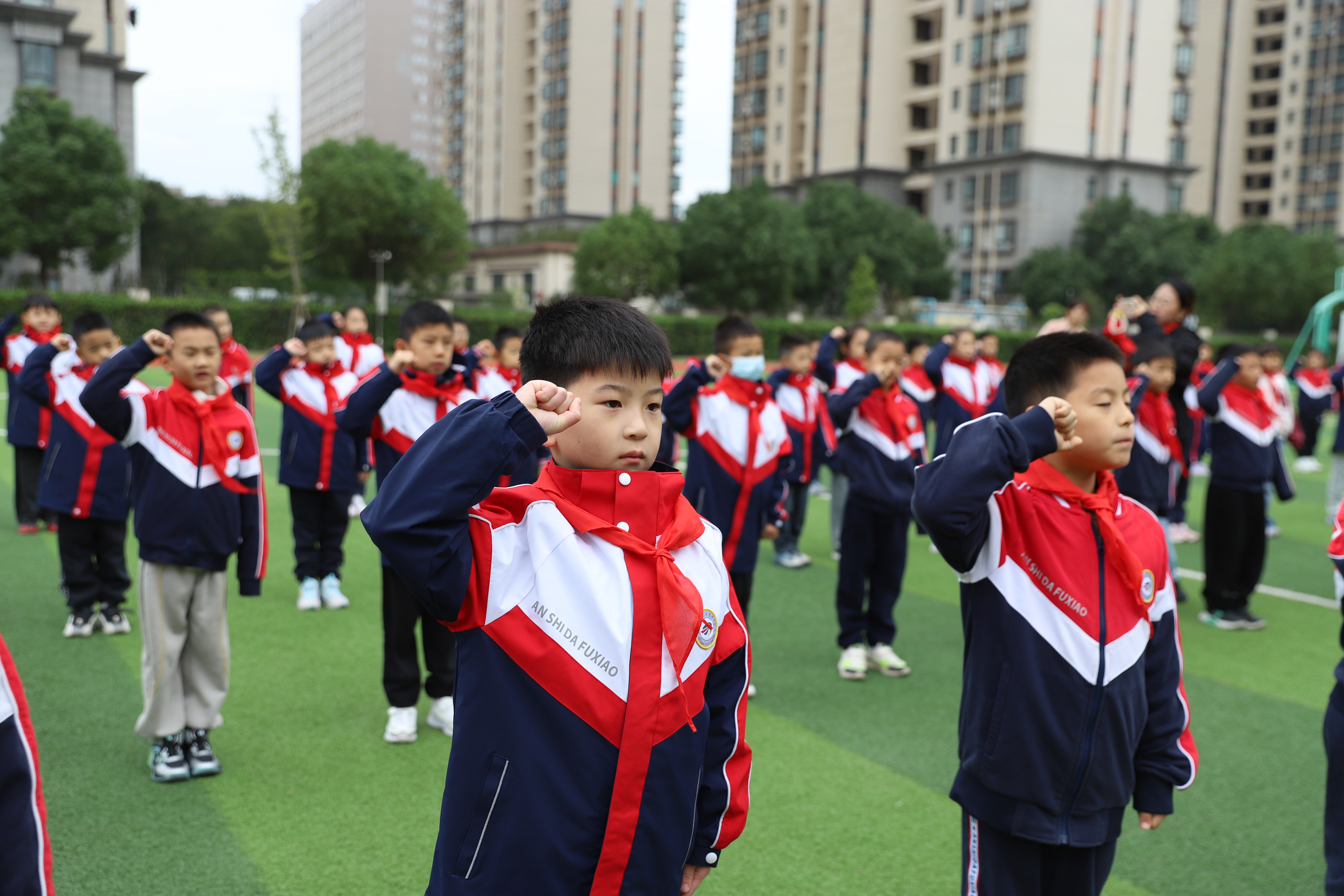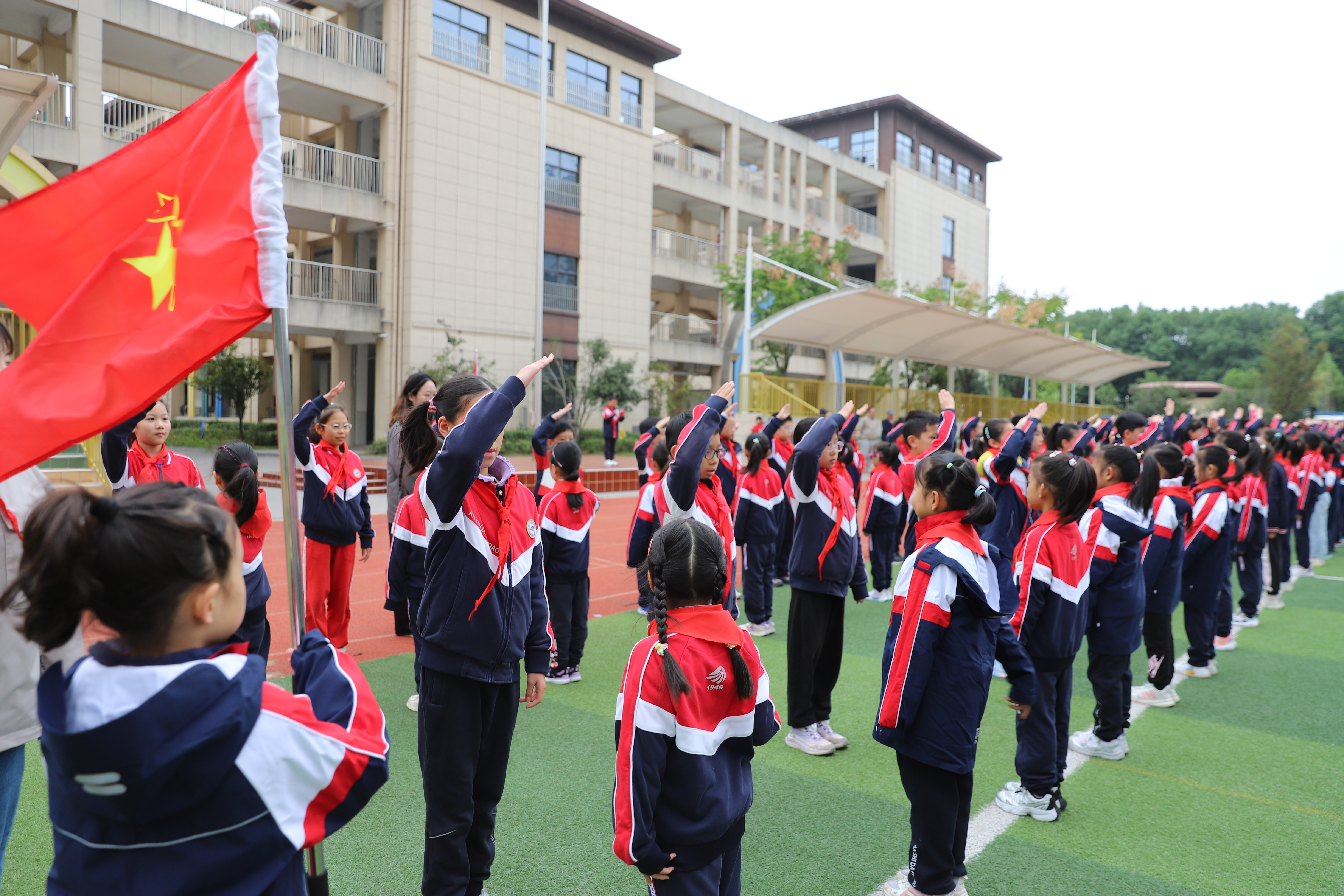 两校区大队辅导员分别带领新队员呼号:准备着,为共产主义事业而奋斗!铿锵而嘹亮的呼号,是召唤,更是少先队员们为推进强国建设、民族复兴伟业接续奋斗的庄严承诺。