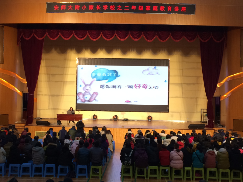 2018年12月7号下午,安徽师范大学附属小学家长学校“家教论坛”系列专家讲座在附小学生活动中心继续开讲。来自我校二年级各班近600名家长到场聆听了本次讲座。该讲座主讲人为我校刘璟老师。刘老师是安徽省教坛新星,市骨干教师,市名班主任工作室主持人,江苏少儿出版社特约撰稿人,国家二级心理咨询师,中学高级教师。本次教育讲座的主题是:“亲爱的孩子愿你有一颗好奇之心”。刘老师从“亲近自然、不断发问、尽情想象、以书驯养”四个方面详细阐述了家长帮助孩子亲近阅读的路径和方法,家长们该怎样保护与激发孩子在日常生活中的好奇心以及在引导孩子进行有效绘本阅读时的策略和方法。讲座期间,刘老师与现场的家长们进行了热情互动与交流。讲座结束后,刘璟老师还接受了部分家长的相关咨询,针对部分家长在家庭教育中遇到的困惑与问题进行答疑解惑。家长们纷纷表示深受启发,受益良多,并希望学校今后多举办这样有针对性的家教讲座和经验交流活动。(文/周雅萍 图/王硕、石艳)