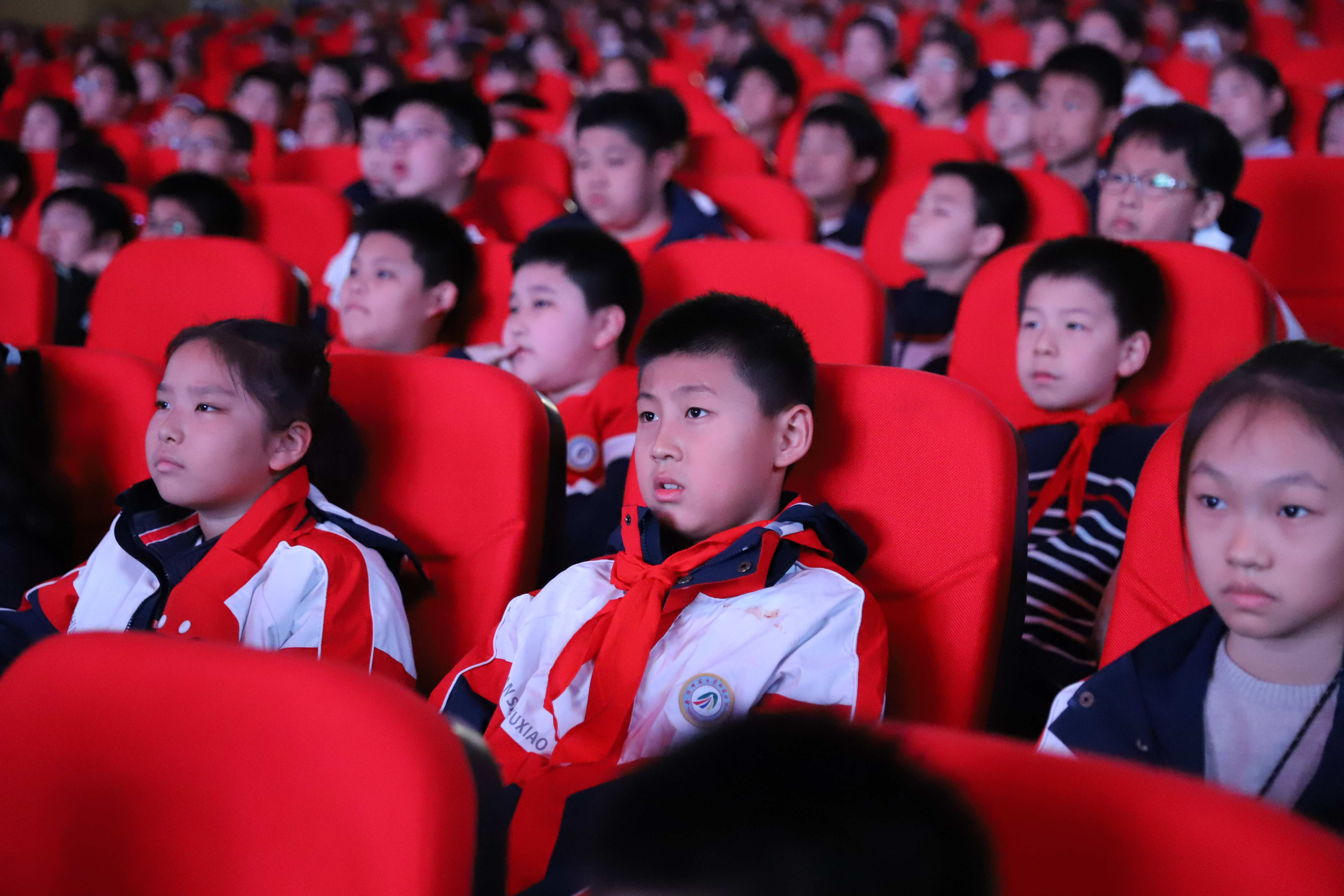 观影前,文昌西路校区执行校长宋玲简单介绍了影片故事发生的背景,希望孩子们铭记历史,怀敬畏之心观影,用心感悟先辈们沉甸甸的家国情怀。