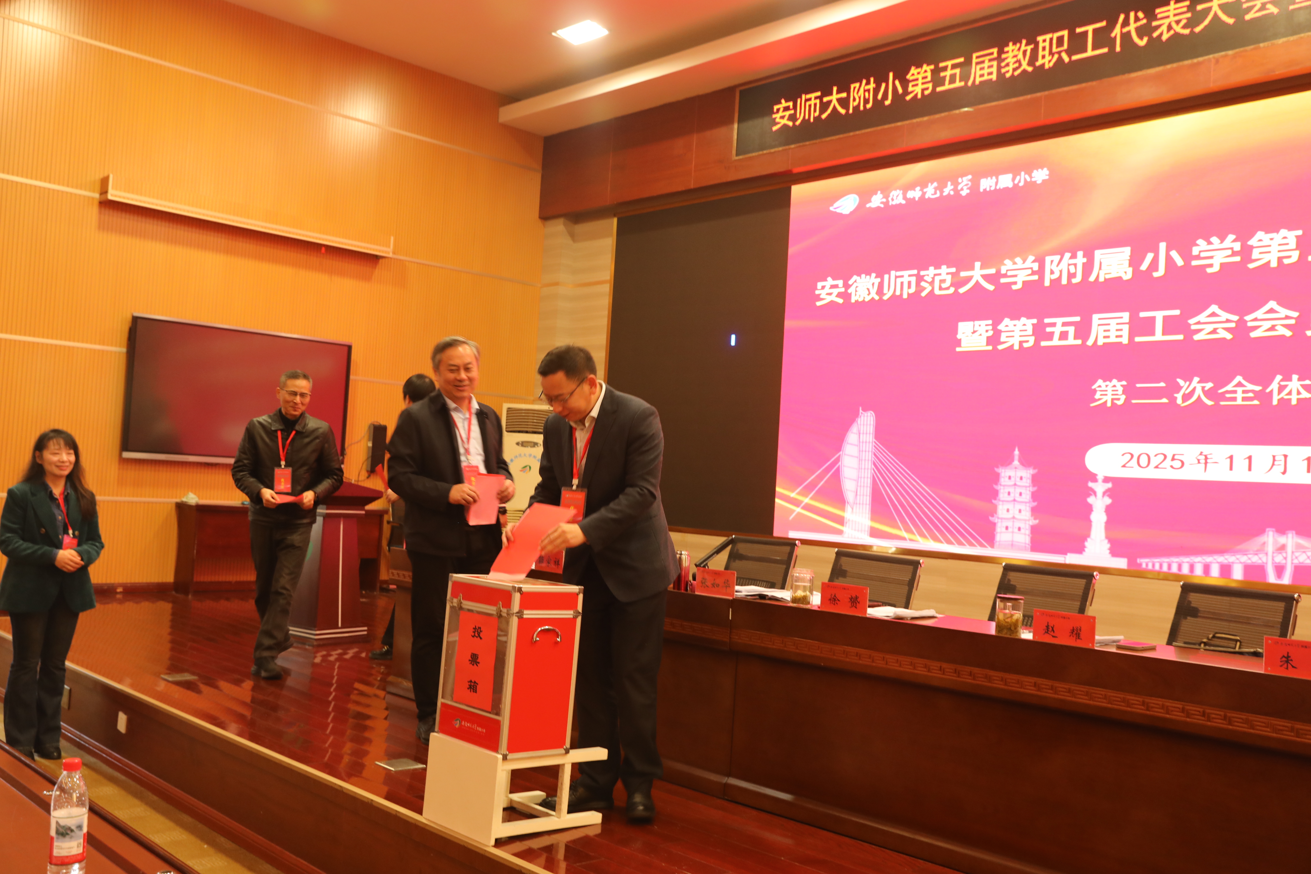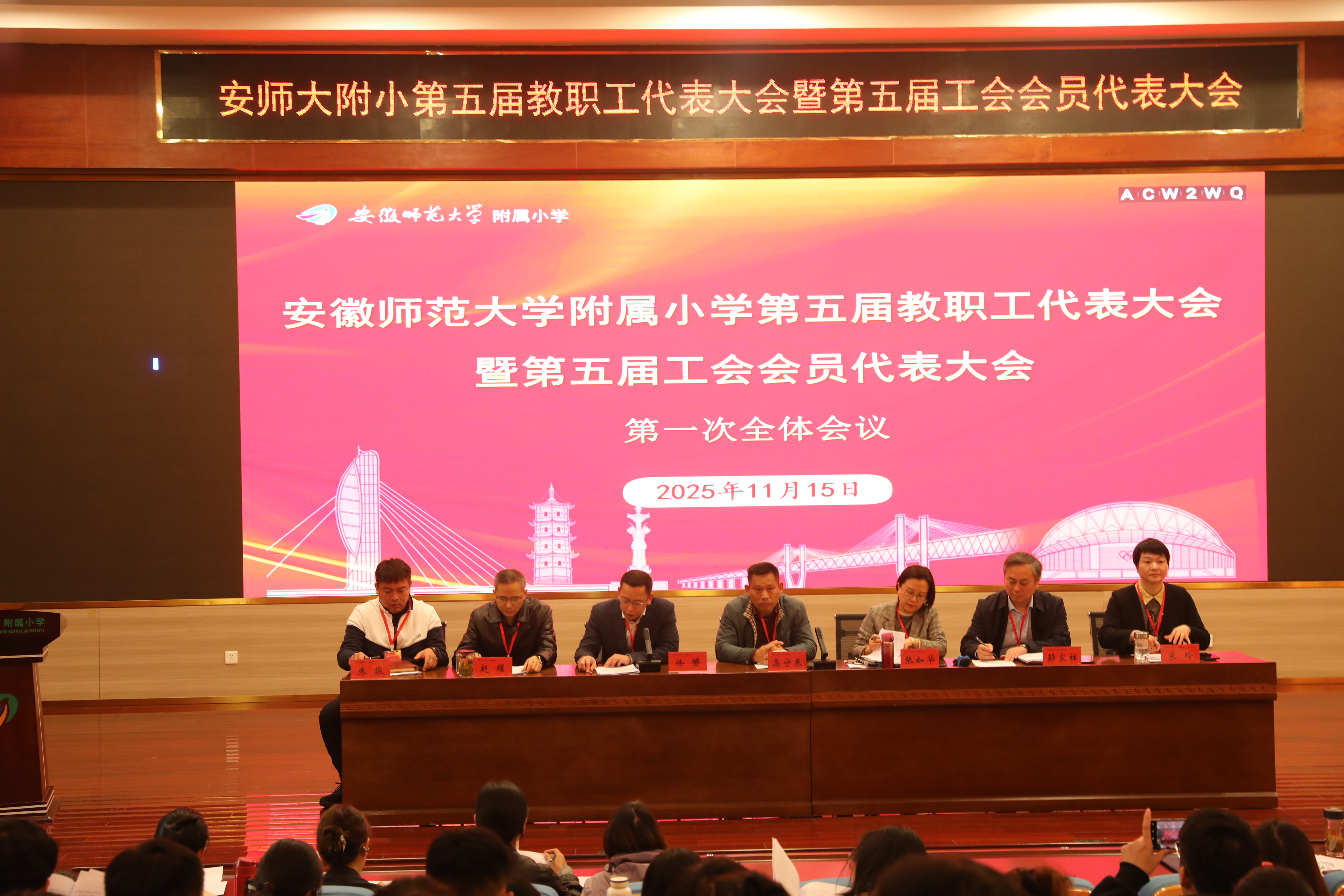2025年11月15日上午,安徽师范大学附属小学第五届教职工代表大会暨第五届工会会员代表大会在附小中校区多媒体报告厅召开。安徽师范大学工会常委、副主席,体育学院副院长高守东出席大会并致辞。附小党政班子成员、工会负责人等出席会议,附小一校四区151名教代会代表、本部两校区23名工代会代表参加会议,童辰午等特邀代表列席会议。