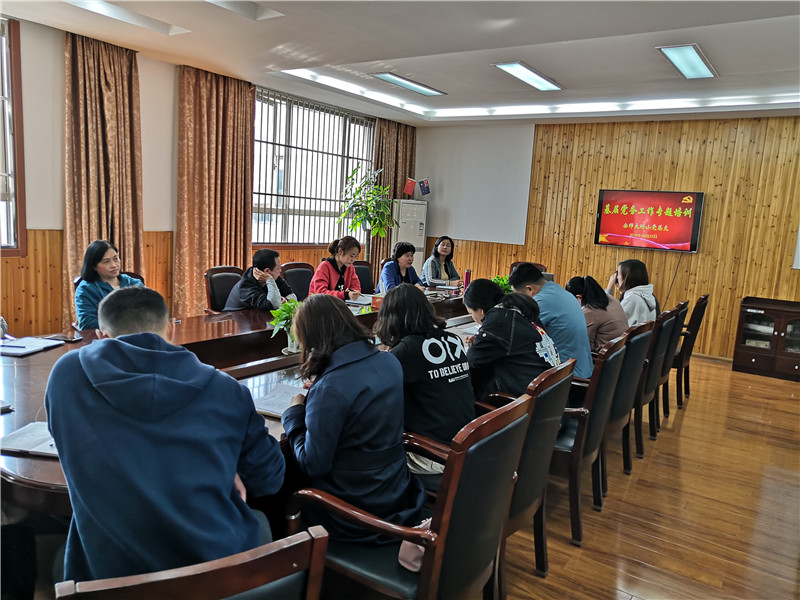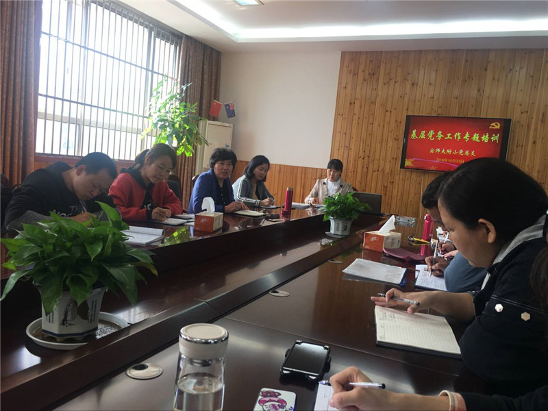 2018年10月23日中午,附小党总支党务工作者培训学习在第三会议室进行。本次学习活动由附小党总支书记费太秀同志主持。党总支秘书郑红同志分别就发展党员工作、基层党组织标准化建设、党费收缴和党组织关系转接等专题给大家进行了培训。