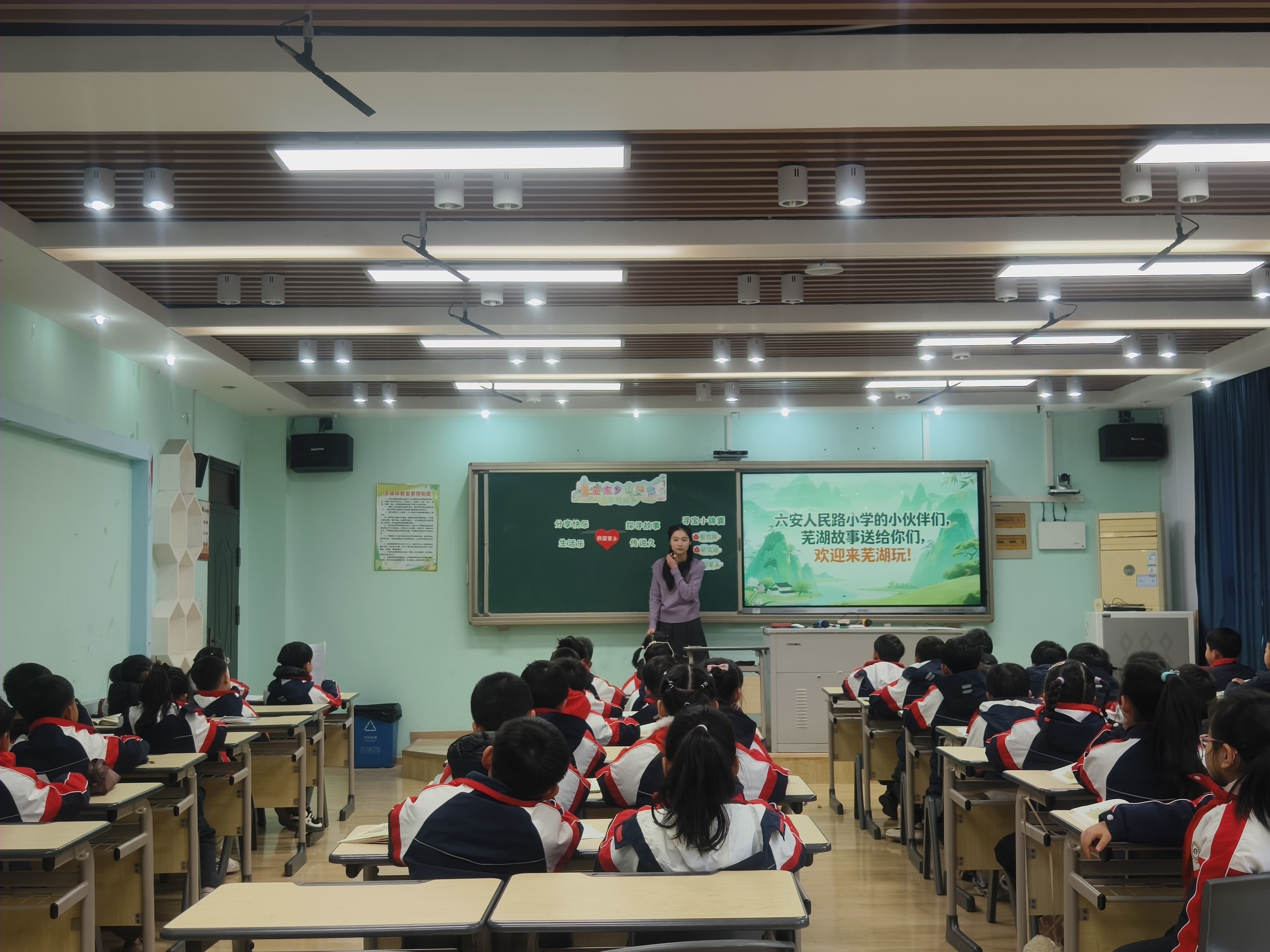 中校区朱文慧老师执教二年级上册《我爱家乡的山和水》第二课时,以充满童趣的“鸠小兹”为学习小伙伴,巧妙创设与六安人民路小学手拉手的真实情境,引领学生开启了一场别开生面的芜湖文化探寻之旅。课堂上,朱老师围绕“芜湖故事宣传册”制作主线,设计了“芜湖生活欢乐多”“芜湖传说我找寻”“芜湖特色我宣传”等系列环节,引导学生分享在芜湖生活的温馨点滴,学习查找资料的方法,深入挖掘家乡的传说故事。在小组实践环节,学生们化身“芜湖故事宣传大使”,通过展示家乡风物、演唱芜湖歌曲、探秘特色路名、用方言演绎家乡特产等多元形式,全方位展现芜湖地方特色,既锻炼了表达与协作能力,更在沉浸式体验中加深了对家乡的认知与热爱。本节课不仅是对市级课题《芜湖地方优秀传统文化融入小学道德与法治课的路径研究》的深入探索,更巧妙融合人工智能技术,实现了学科知识、实践能力与文化传承的有机统一,让课堂充满生机与内涵。
