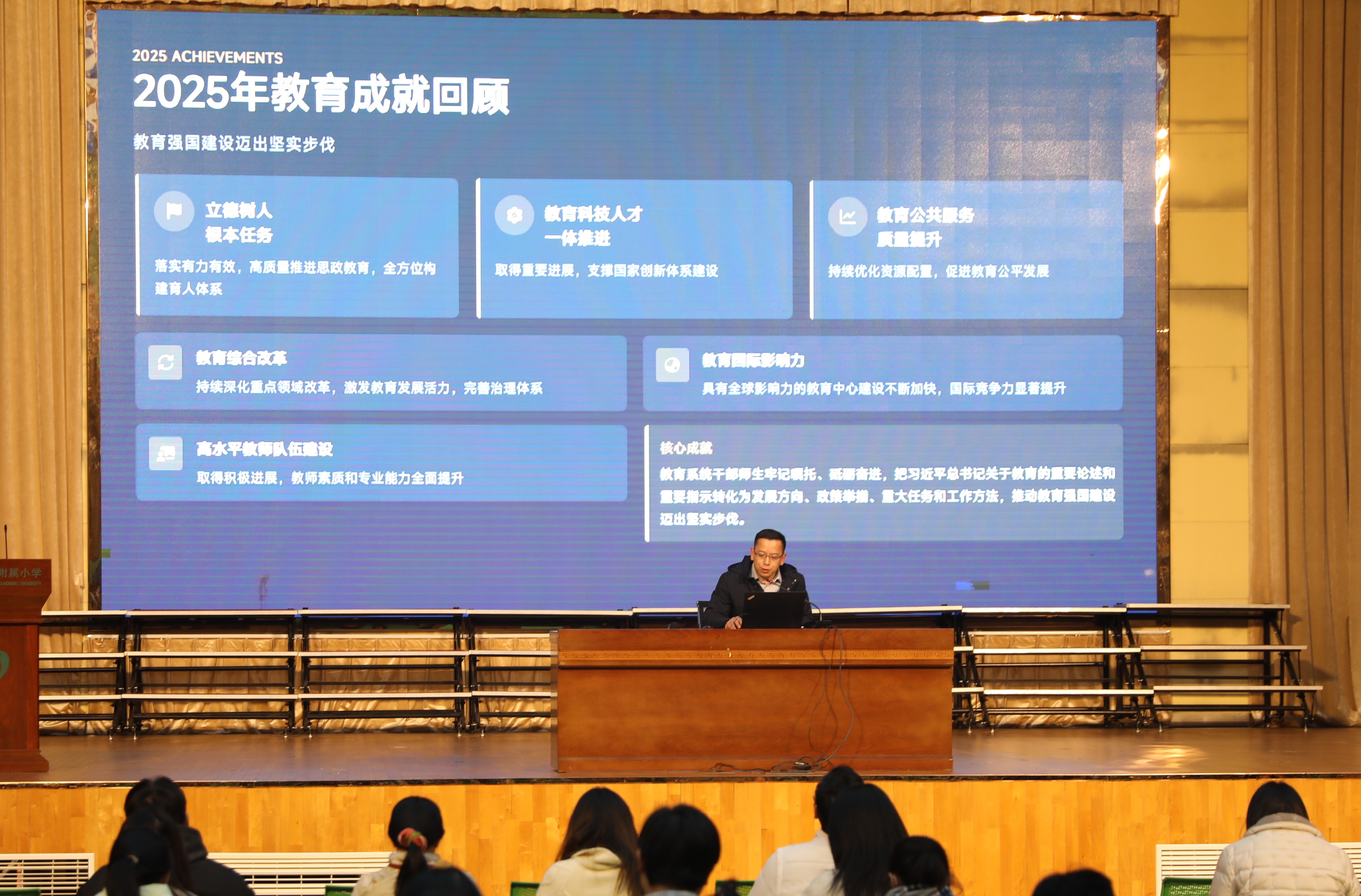 1月16日下午,附小召开政治学习暨期末工作部署会议。会议由党委书记张如华主持,全体教职工参会。
