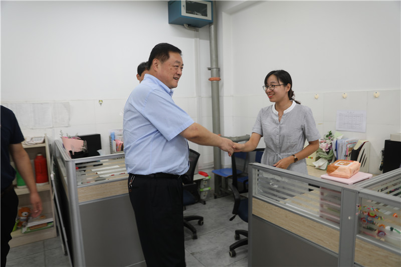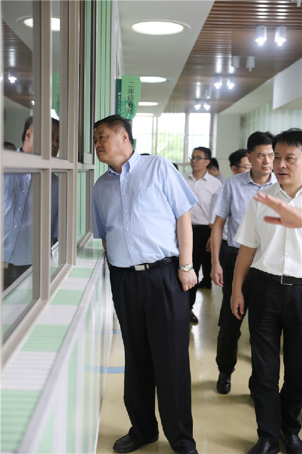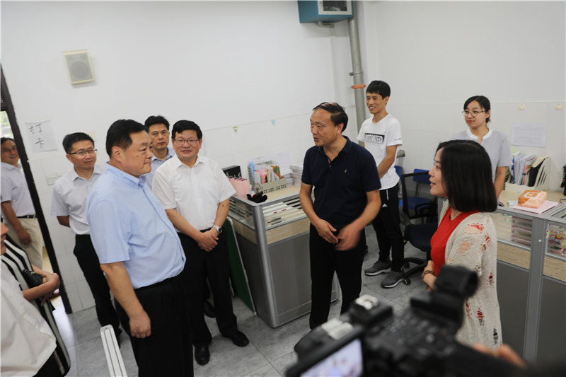 9月10日教师节当天下午,芜湖市委副书记、市长贺懋燮,副市长张志宏,市政府秘书长汤德余等政府领导来我校进行教师节慰问并开展调研。安徽师范大学党委书记顾家山、副校长陆林、芜湖市教育局局长江汛、副局长刘育红、弋江区长欧冬林等全程陪同慰问、调研。在我校郁培林校长、费太秀书记的引导和介绍下,贺市长一行兴致勃勃地参观了学校行知广场、校园电视台、学生书吧及学生活动中心等场馆,了解了我校办学的基本理念、课程设置、教学改革等相关情况,并到教师办公室与老师们亲切交谈,表达了对教师节日的问候。调研中,贺市长一行充分肯定了我校办学取得的成绩和在我市基础教育方面做出的贡献,希望附小继续发挥名校优势,为我市打造教育名城发挥更大的作用。(图/刘琦文/尹娟娟)