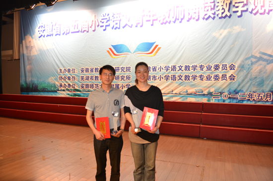 2012年5月21日至23日,安徽省第五届小学语文青年教师阅读教学观摩活动在芜湖举行。这是一次规模空前的盛会,来自全省小学语文教育界的专家、教研员和一线教师代表共1200多人参加了此次活动。本次阅读教学观摩活动,全省19位选手经过三天的角逐,共产生九个一等奖,我校教师赵耀、宋玲在本次大赛中表现突出,均获得了一等奖的好成绩。赵耀老师还将代表安徽省参加华东六省一市的教学比赛。