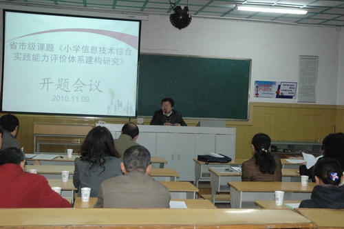 11月9日上午,省市级课题《小学信息技术综合实践能力评价体系建构研究》开题会议在我校多媒体教室召开。会议由市教科所所长俞宏胜主持。参研学校的分管校长、教研室主任及全体参研教师参加了本次会议。