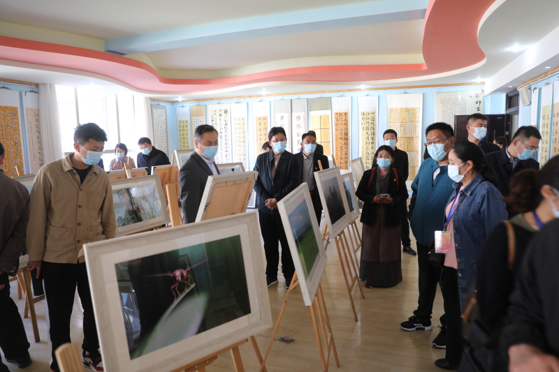 考察团一行参观了校陶艺室、创客室、校园电视台、艺术作品展馆、美术教室等。茆家祥副校长向大家介绍了附小办学情况及各功能室的使用等。考察团一行充分肯定了附小的硬件条件、校园文化、办学理念等。浪卡子县人大代表还现场挥毫“扎西德勒”,送上最真挚的祝福。考察结束时,考察团代表献上了洁白的哈达,向弋江区教育局和附小表示由衷感谢。