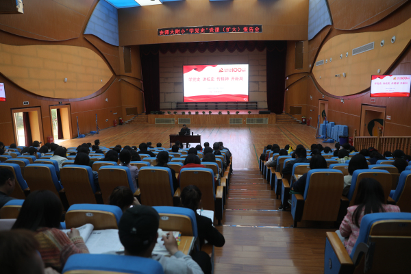 2021年4月16日下午,在附小中校区学生活动中心开展了党史学习教育扩大会议。本次党课由附小党委委员、副校长茆家祥同志主持,附小党委委员、校长助理、凤凰城分校兼银湖分校校长赵耀同志主讲,安师大小教集团中校区、文昌西路校区、东校区和西校区全体党员和教师共300余人参加,安师大党史学习教育第四指导组组长、图书馆党委书记傅绪中同志、安师大党史学习教育第四指导组组员、教务处李进同志亲临指导。