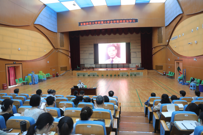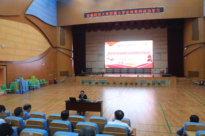 “张一锋、马常卿夫妇被称为当时中共南京地下市委情报部的‘尖刀’,打入敌人内部,为我党传递重要情报,掩护多名同志,为建立新中国立下了汗马功劳。”2021年6月11日下午,在附小中校区学生活动中心,附小著名校友、海军指挥学院博士生导师、海军大校张楠为老师们讲述了他的父亲张一锋、母亲马常卿的人生传奇。本次党课由附小党委书记费太秀同志主持,安师大小教集团本部中校区和文昌西路校区全体教师共200余人参加。