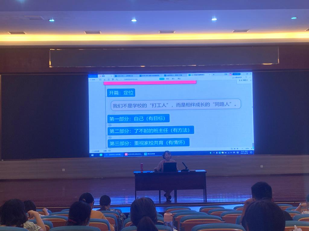8月19日上午,西校区德育室何毅娟主任就学校德育、正副班主任工作职责的重要性进行了强调,她讲述了多个优秀班集体的事例,强化了新教师的责任意识。