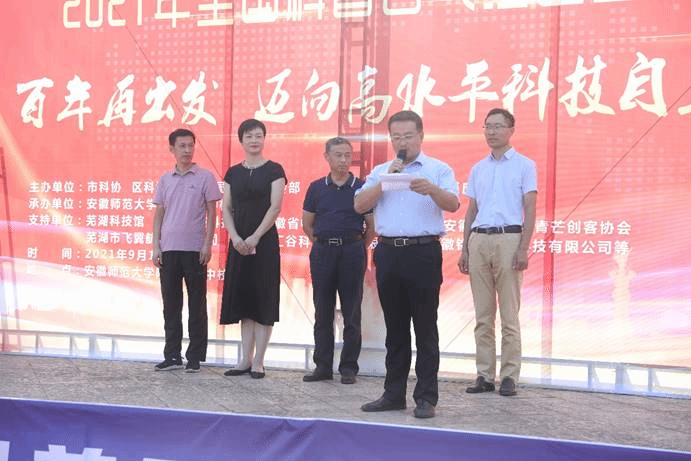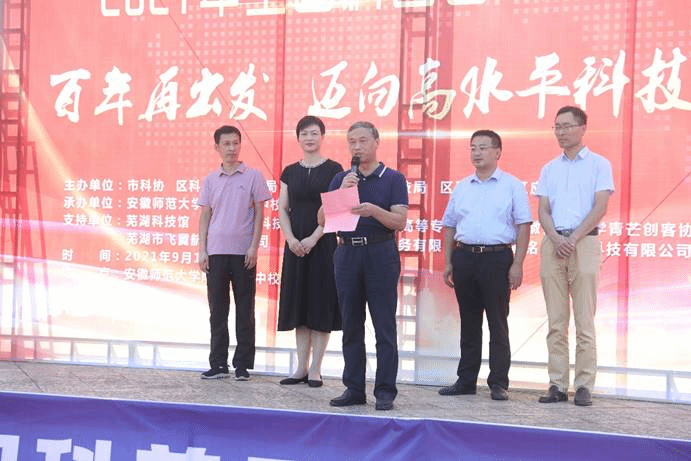 芜湖市科协副主席邹维银,高新区科技经贸部部长凤海飞,弋江区教育局信息中心主任、电教馆馆长吴斌,弋江区科技局副局长王东升,安徽师范大学附属小学副校长宋玲出席了本次活动。我校师生代表共计1200多人参加了开幕式。