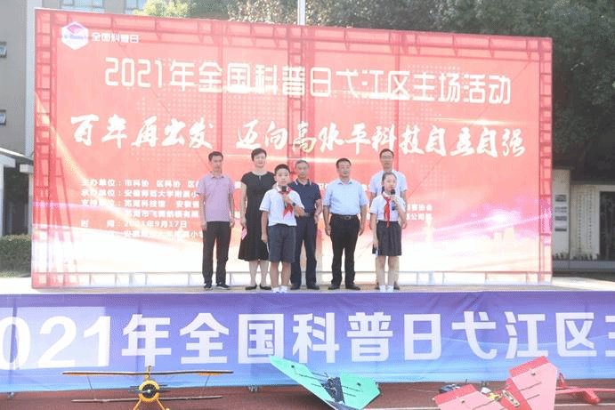 9月17日,2021年全国科普日弋江区主场活动在我校举行。此次活动由芜湖市科协、弋江区科协、弋江区教育局、弋江区委宣传部、弋江区科技局、弋江区卫健委、弋江区应急管理局联合主办,安徽师范大学附属小学中校区承办。