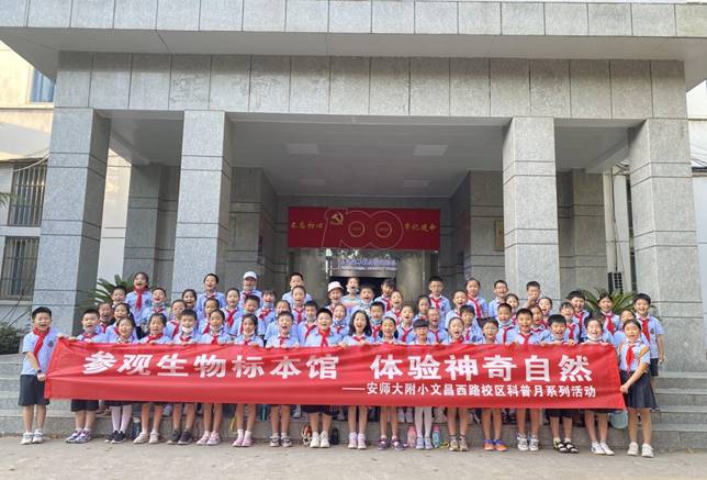走进生物标本馆,感受自然魅力。9月23日下午,安师大附小文昌西路校区科普活动在安徽师范大学生命科学学院生物标本馆举行。生命科学学院的老师及领队早早就在学院标本馆门前迎接同学们的到来。随后,老师带领同学们走入标本馆,领略生命的多姿多彩。