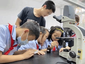 参观了标本馆之后,老师们还带着同学们参观了实验基地,并教同学们用显微镜观察洋葱细胞。老师带着同学们从认识显微镜,再到调式显微镜,最后制作洋葱表皮装片。在老师的指导下,同学们分组实验,整个实验过程严谨而有序。当小朋友们步出实验室时,仍意犹未尽地讨论着刚刚的所见所闻,