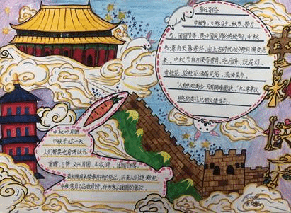 四年级开展以中秋节为主题的手抄报制作活动。他们搜集资料、精心准备,绘制了一幅幅主题鲜明、图文并茂的精美手抄报。