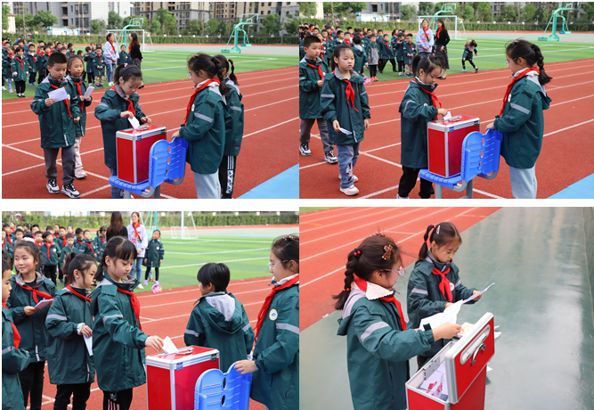 各中队队员通过观看候选人竞选视频及海报,民主投票后,经监票人、计票人公正公平公开统计,最终产生安师大附小文昌西路校区第一届少先队大队委员,共9名。