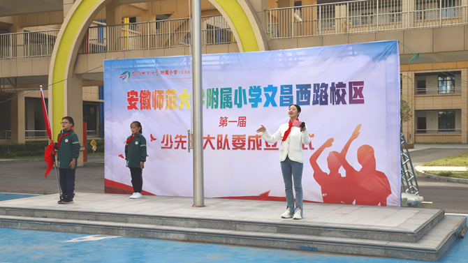 为深入贯彻落实习近平总书记提倡的“从小事做起,从身边做起,努力争做新时代好队员”的理念,激发少先队员的主人翁意识,增强少先队员的光荣感和组织归属感,2021年10月12日下午,安师大附小文昌西路校区隆重举行了第一届少先队大队委成立大会。