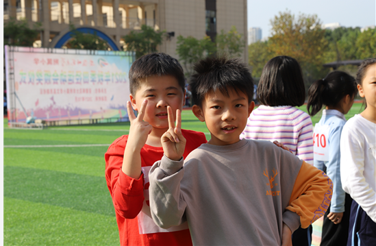 赛场上,选手们你追我赶,赛场边,拉拉队员们也在助威呐喊。欢呼声、喝彩声、加油声、欢笑声此起彼伏。孩子们笑着、闹着,用汗水书写着奋发向上的精气神,用快乐描绘着五彩斑斓的新画卷。