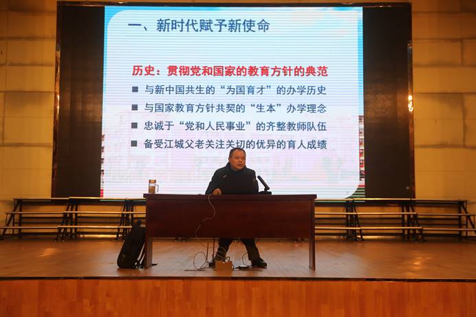 春回大地,万象更新。2022年2月11日上午,学校党委在中校区学生活动中心召开了2022年第一季度党课(扩大)会议暨新学期全体教师会。本次党课由附小新任党委书记、校长辛治洋同志主讲,党委委员、副校长茆家祥同志主持,安师大小教集团中校区、文昌西路校区、东校区、西校区全体党员和教师近300人参加。
