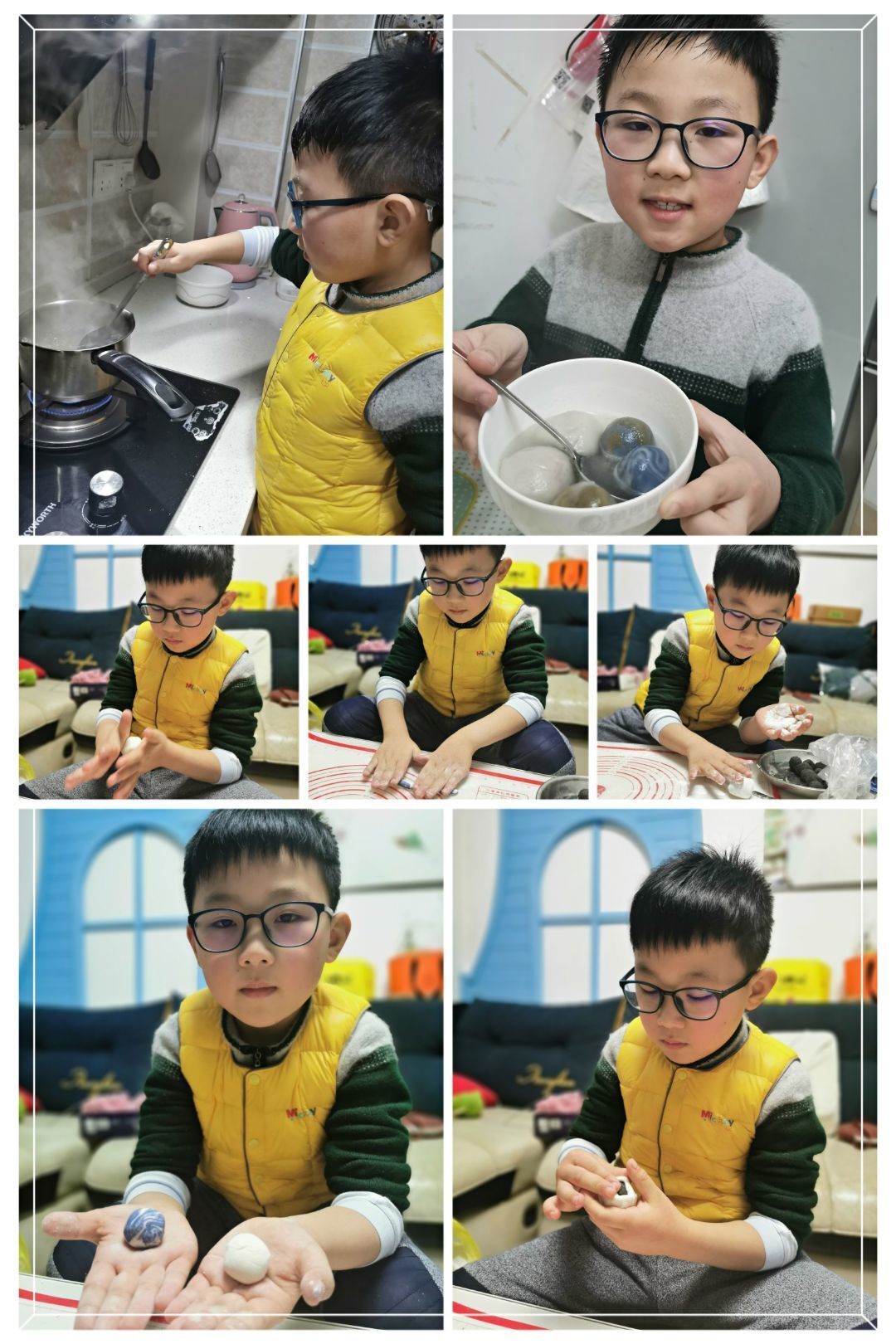 本部两校区学生在家长的指导下做元宵、煮元宵,同家人一起品尝,共度佳节。