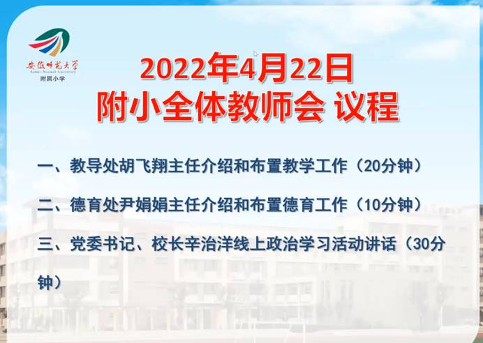 4月17日4时,我市因突发疫情全域进入静态管理,市主城区学校全面停课,开启线上教育教学。安师大附小党委周密部署,学校各处室迅速行动,及时启动疫情下线上教育教学预案,学校各项工作有序开展,真正做到了“停课不停学,停课不停教”。