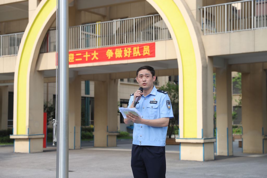 文昌西路校区邀请了三(1)中队学生家长代表芜湖市公安局调研室佘警官给全体少先队员宣讲预防溺水“六不准”等安全知识。