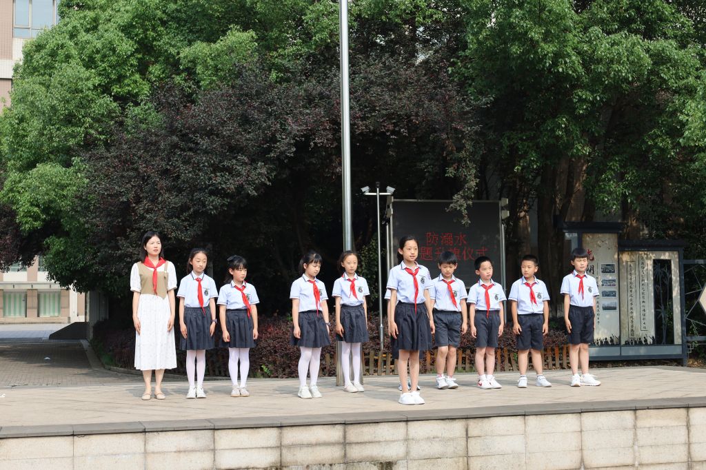 6月6日上午,两校区升旗仪式以“防溺水安全教育”为主题。中校区308中队带来了自编自演的《防溺水安全小快板》(该中队录制的视频被芜湖新闻综合广播媒体推广宣传,获得广大师生一致好评)。中队辅导员徐凤云和少先队员们用快板传唱的方式宣传防溺水知识,呼吁全体队员行动起来,珍惜生命,预防溺水,避免意外的发生。唱词朗朗上口、内容通俗易懂,给大家留下了深刻的印象。