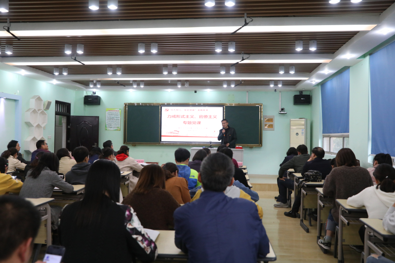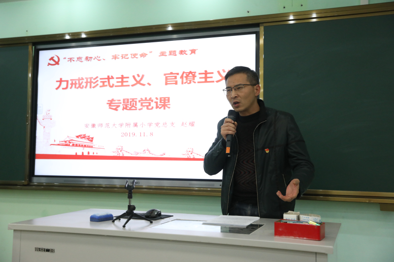 2019年11月8日下午,附小党总支青年委员赵耀同志在多媒体二室给党员老师们上了一堂生动而深刻的党课,题为:不忘初心、牢记使命——力戒形式主义、官僚主义。