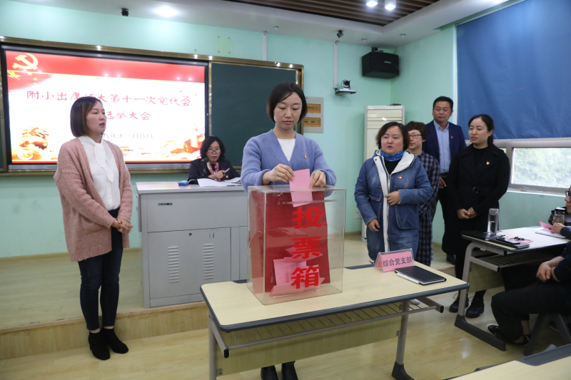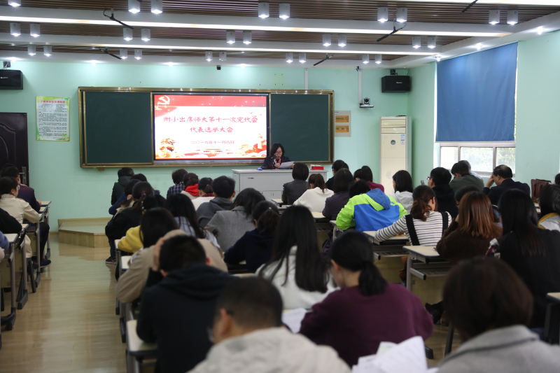 2019年11月8日,附小党总支在多媒体二室召开出席师大第十一次党代会代表选举大会。附小党员参加了本次会议,会议由党总支书记费太秀同志主持。