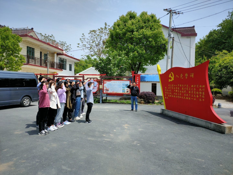 走出纪念馆,大家来到新四军第七师司令部旧址,在门前的党旗下,支部书记杨子双带领预备党员汤兴军老师进行了入党宣誓,全体党员也一同重温了入党誓词。