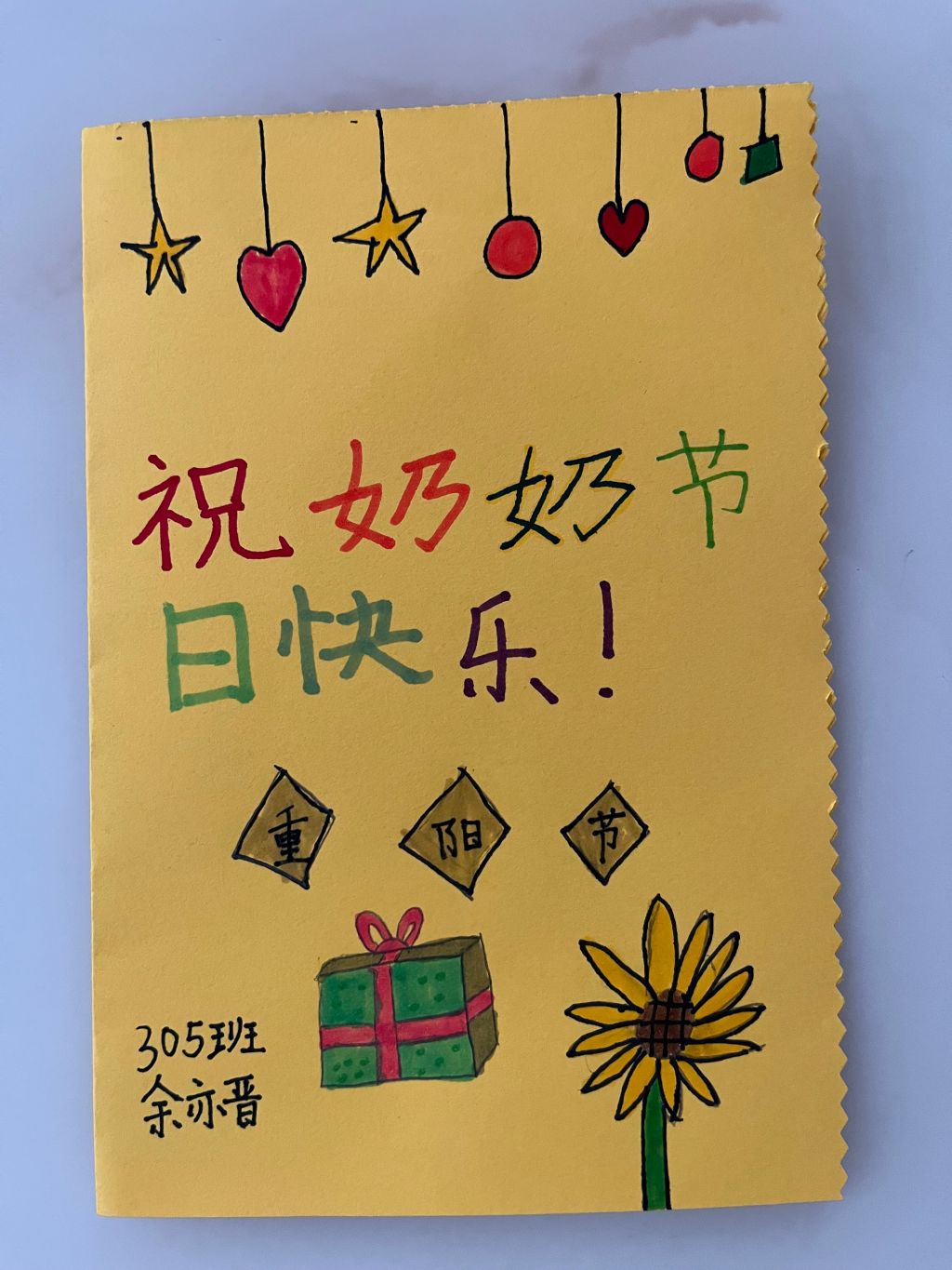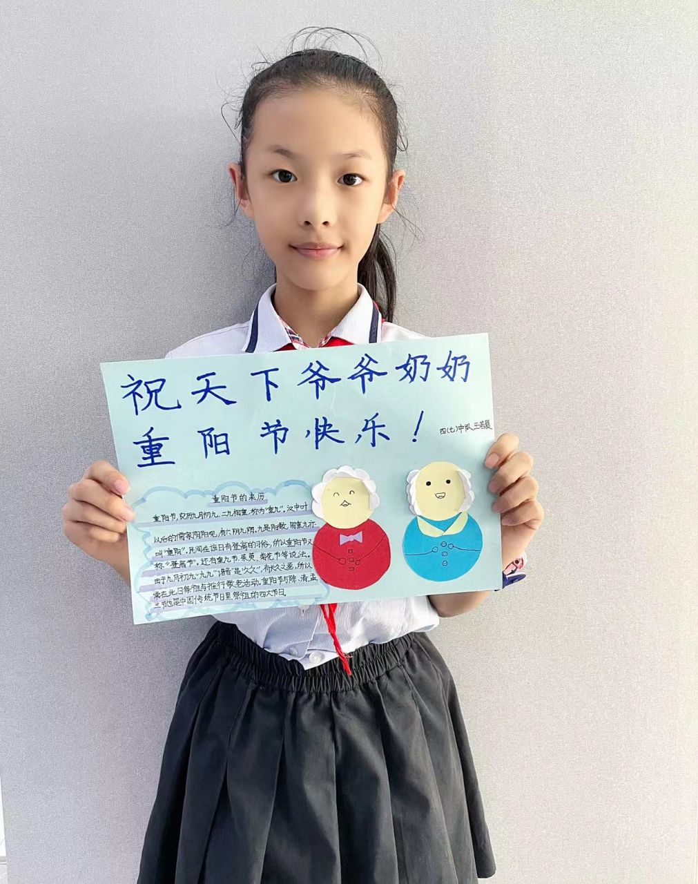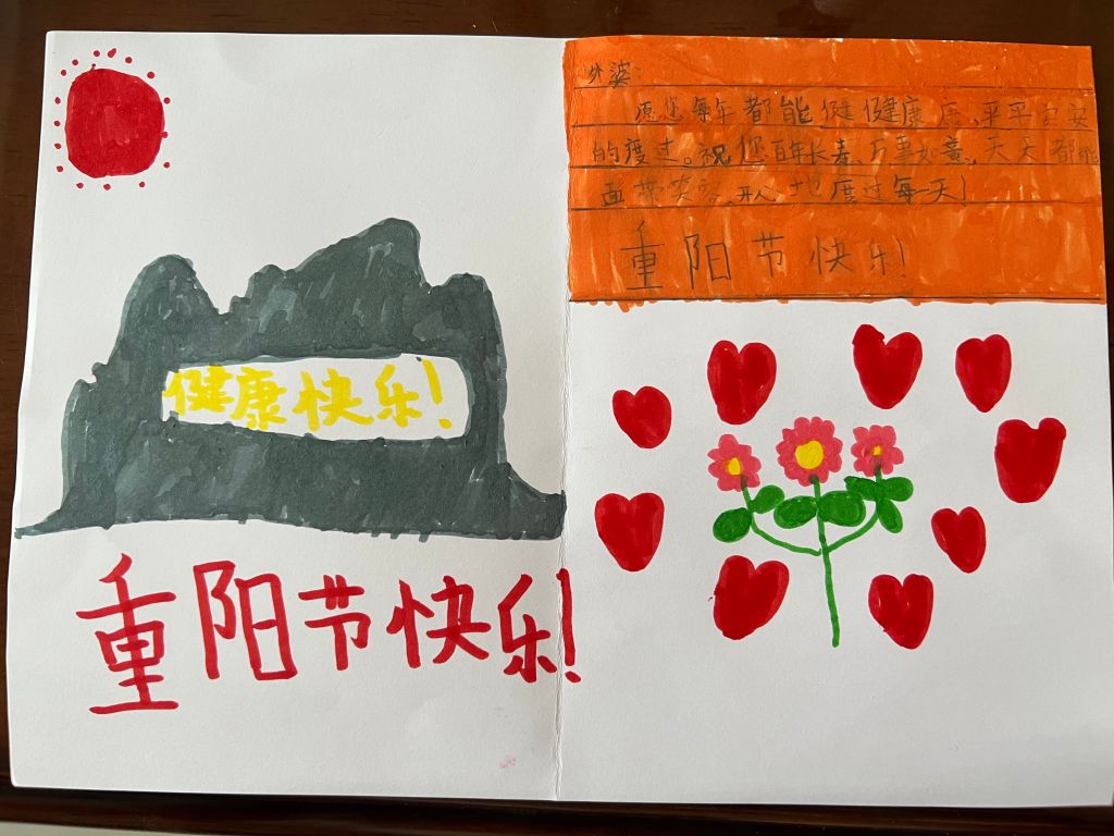 重阳节被赋予了新的时代内涵。在这样的传统节日里,不同年级的孩子用自己的方式向家中的长辈表达着浓浓的敬意和满满的爱意。