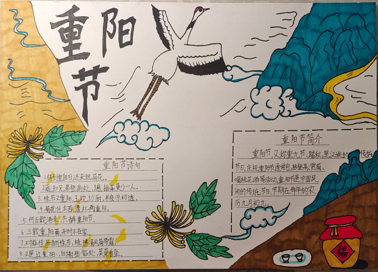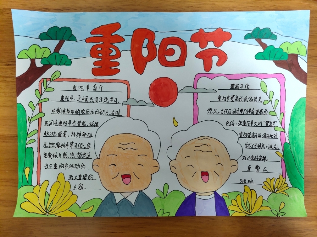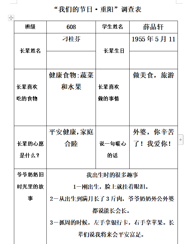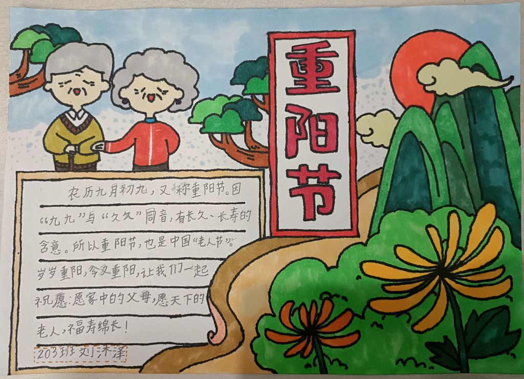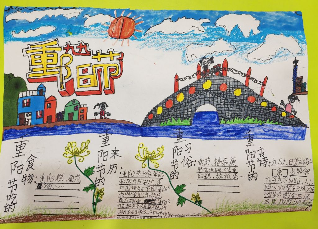 重阳节被赋予了新的时代内涵。在这样的传统节日里,不同年级的孩子用自己的方式向家中的长辈表达着浓浓的敬意和满满的爱意。