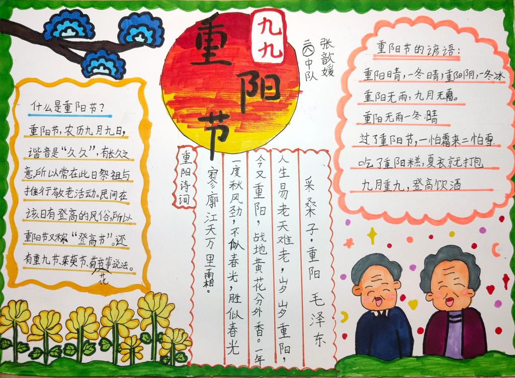 学校以班级为单位,邀请家长与学生们一起通过查找文献资料等方式,了解重阳节的来历、风俗习惯,并制作相关知识卡片。
