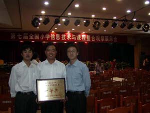 2003年10月31日至11月3日,全国第七届小学信息技术与课程整合观摩展示会在广东省广州市东山区举行,此次比赛盛况空前,全国有1500多人参加,112节课参与了展示和比赛活动,经过紧张激烈的角逐,我校王光煜老师的数学网络课《可怕的白色污染》以其先进的教育理念、科学的教学设计以及教师本人良好的课堂组织与驾驭能力,得到了评委们与所有听课老师的一致好评与赞赏,并荣获一等奖。在此,全校师生向他表示热烈祝贺。以下是获奖时的部分图片