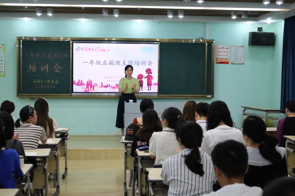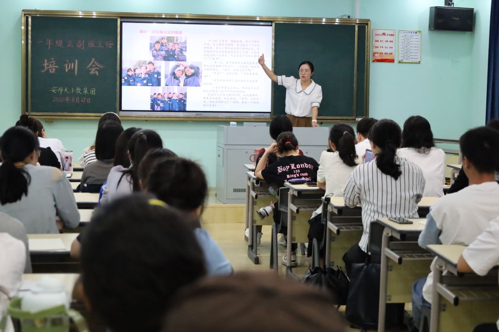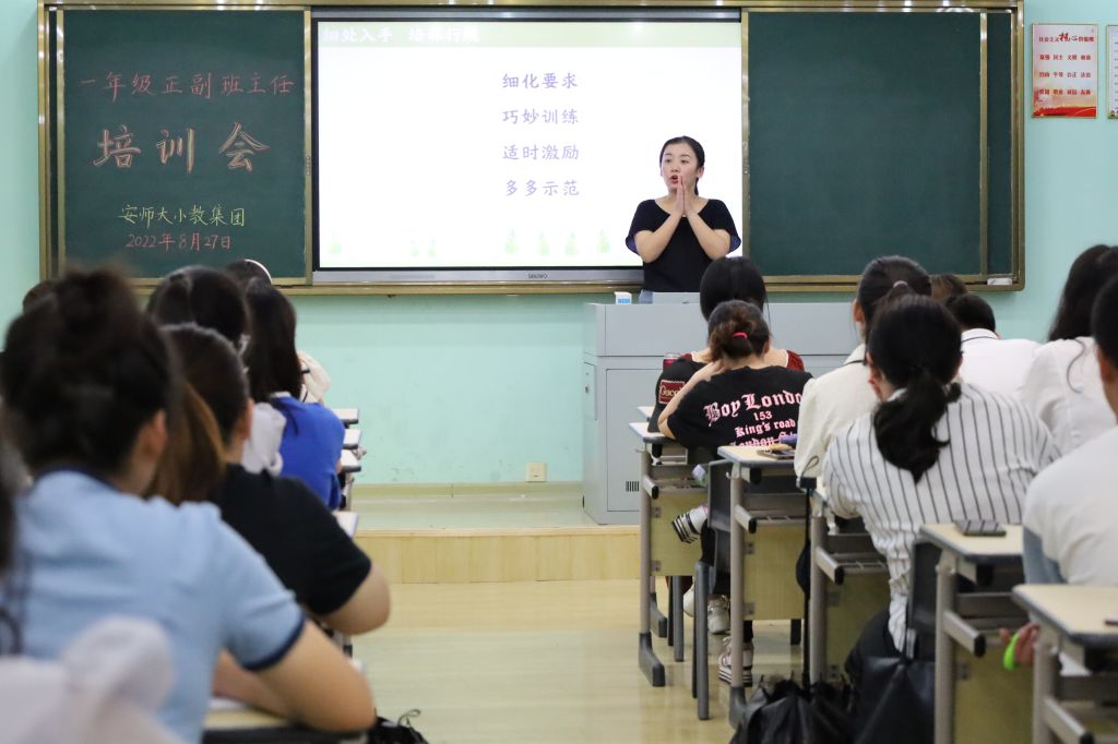 8月27日上午,安师大小教集团一校四区一年级正副班主任培训会在中校区多媒体一室进行,参加会议的有中校区、文昌西路校区、东、西校区的一年级正、副班主任,以及部分新任教师。会议由德育处主任尹娟娟主持。