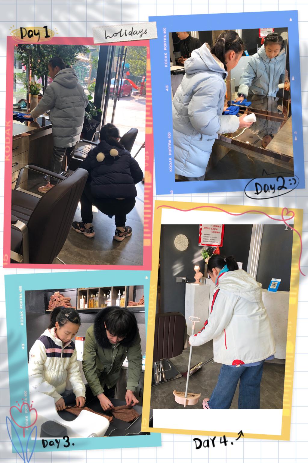 12月6日上午,学生代表们来到学校附近的理发店,体验理发师日常工作,小小理发师们从学徒做起,叠毛巾、擦镜台、扫地、拖地等工作做得有模有样。