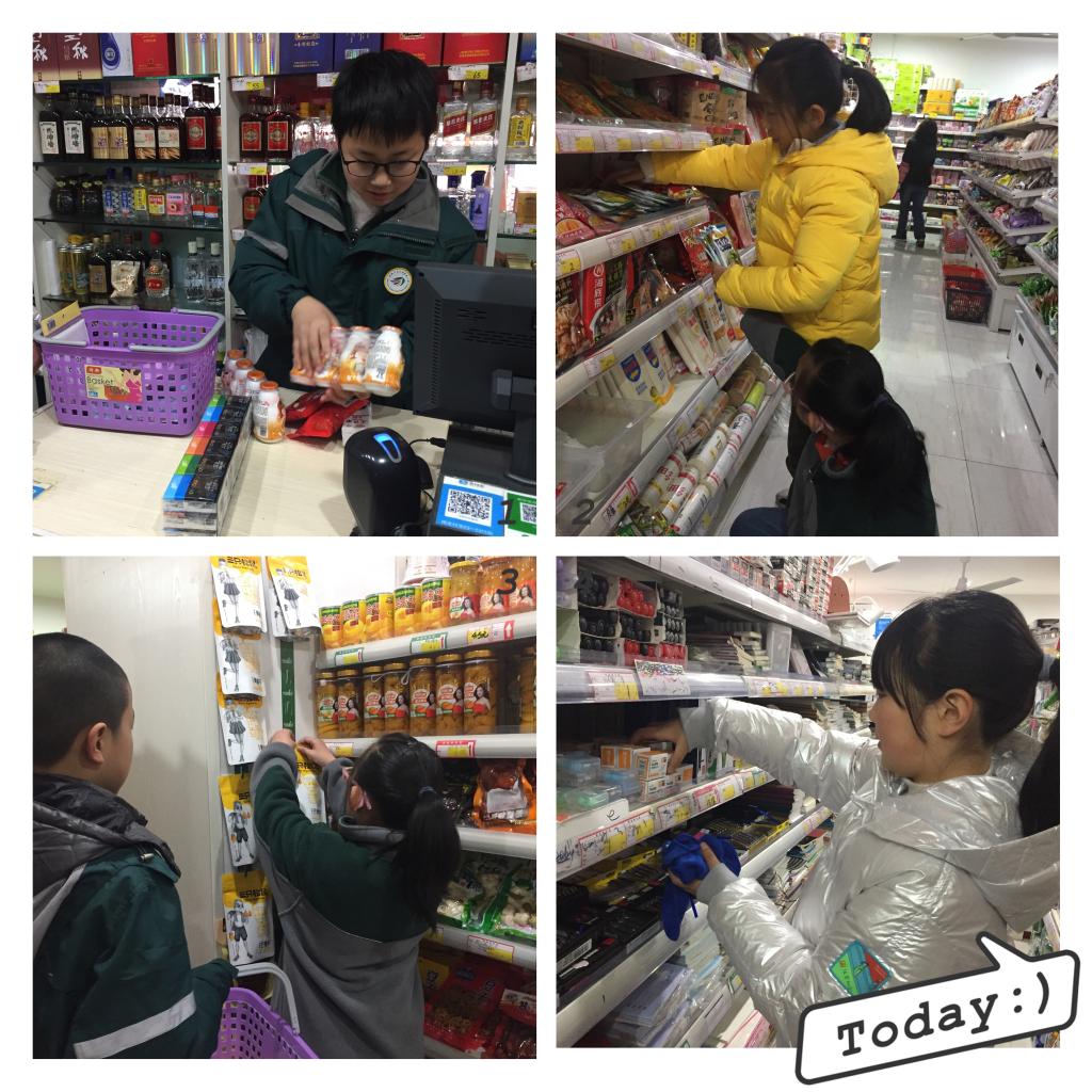 12月5日上午,学生代表们来到学校周边的超市,体验超市货物整理员、收银员工作。看着琳琅满目、整齐有序的商品,小整理员们开心的擦擦脸上的汗水。
