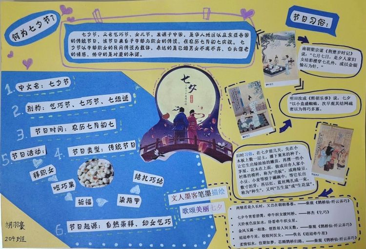 “调查了解求真知,寻根探源话七夕”。小队员们与爸爸妈妈一起走进图书馆、新华书店、芜湖书屋或上网查询资料,了解七夕节的来历、传说和习俗等知识,制作知识卡。