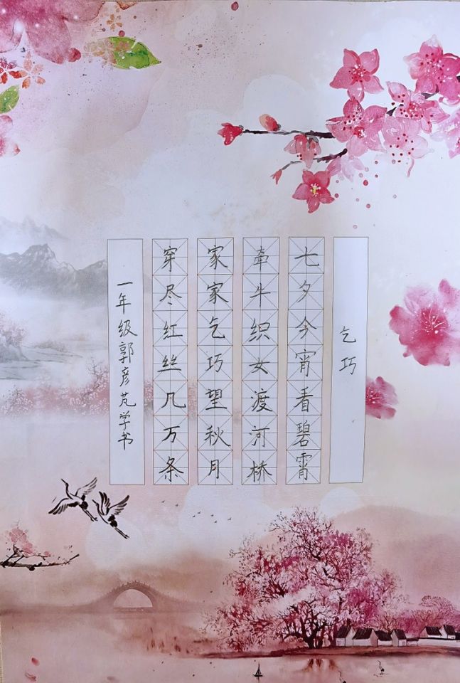 “腹有诗书气自华,最是书香能致远”。“七夕”是我们中华民族传统节日中最具浪漫情怀的节日,无数文人墨客用笔墨描绘和歌颂这个美丽的节日,为我们留下了一首首经典之作。二年级小队员们与爸爸妈妈一起以七夕相关的诗歌、散文开展共读朗诵活动,录制共读视频,摘抄喜爱的诗词。