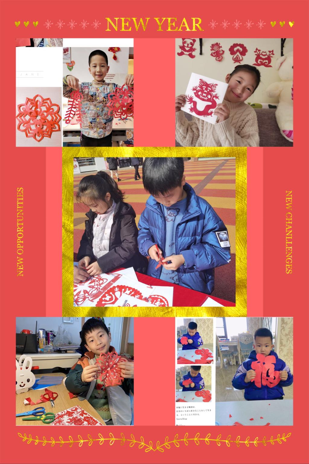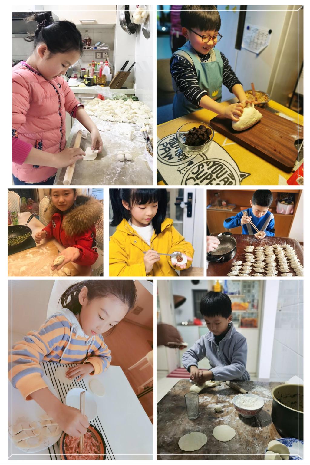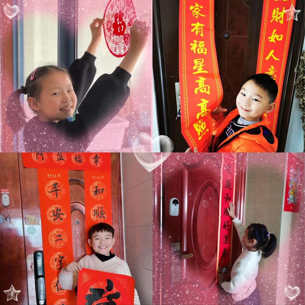 家长们用照片记录下了孩子们办年货、剪窗花、写对联、包饺子、做年夜饭、拍全家福等有意义的春节活动,下面就让我们一起来欣赏那些精彩瞬间吧!