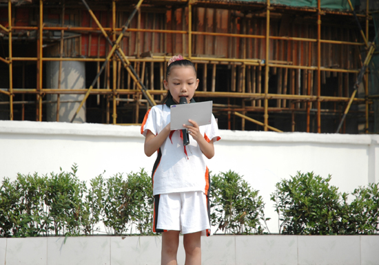 (敬队礼)敬爱的老师,亲爱的同学们,大家早上好!我是来自402中队的方婧,今天我给大家国旗下讲话的主题是《开启想象的阀门》!