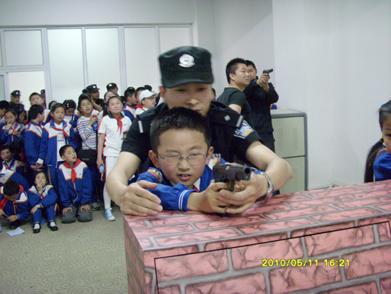 特警队员通过展板讲解、图文演示、动画视频等令孩子们感兴趣的形式,从上学、放学、乘车、外出及独自在家以及火灾自救逃生等几个方面向同学们讲解如何保护自己。同学们认真听讲,仔细做笔记,并展开了热烈讨论。在互动演戏环节,特警队员了邀请同学参与到“坏人”冲进校园的模拟场景,同学们亲身体验了如何“躲散”、寻求保护,以及如何与“坏人”周旋,特警队员们演示了特情处置相关动作。最后,同学们来到地下打靶室,参观体验了“反恐模拟影像训练控制系统”,在一展身手的同时学习自护技巧。