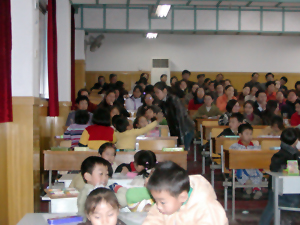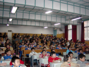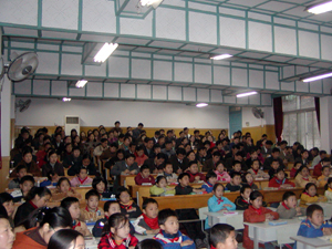 下面是我校2003年素质教育开放周活动中教师上公开课、家长代表交流会现场的图片,请看: