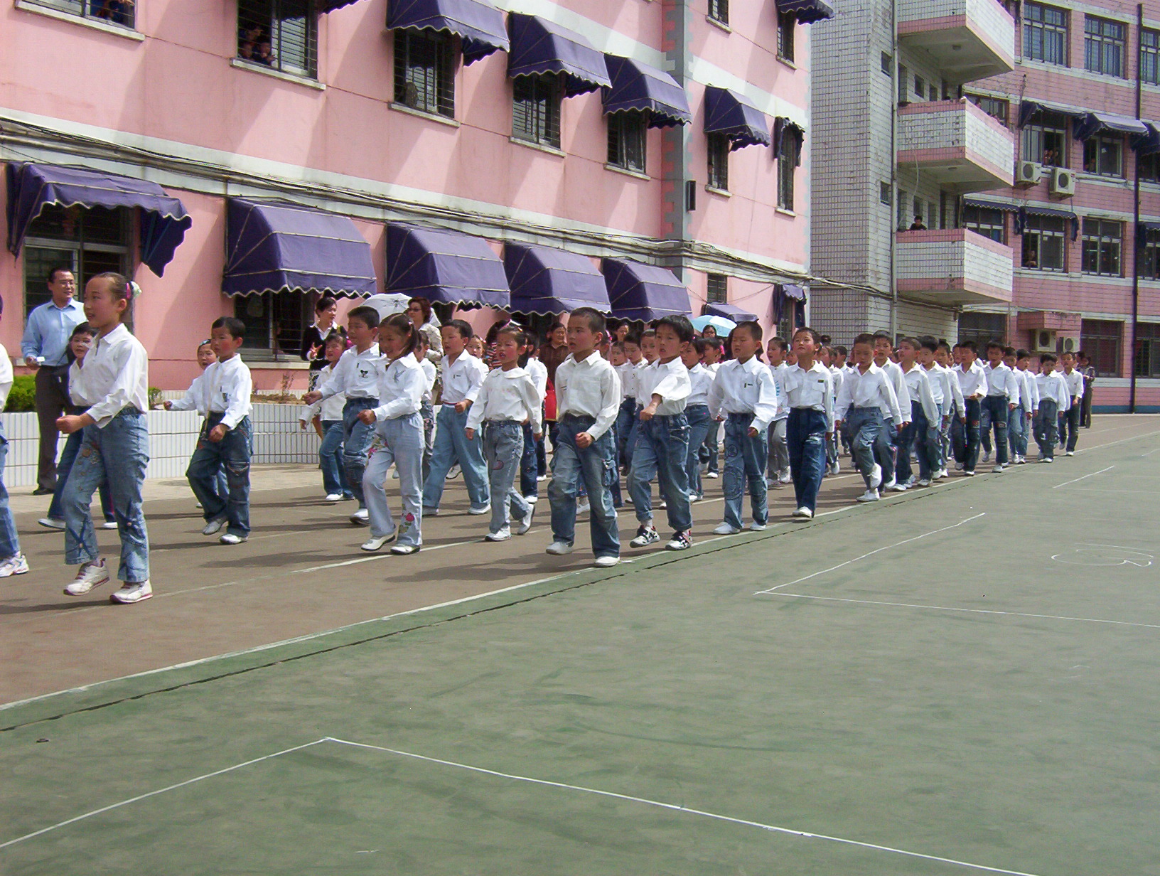 2006年4月30日,我校举行全校广播操比赛,通过这次比赛,一是提高学生做操的积极性,同时也为我校六一儿童节选拔节目,获得年级前两名的班级将组队参加校六一广播操汇演。下面为比赛剪影: